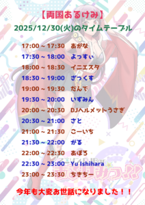 参加できない方はぜひこちらにてお待ちしております!!12/30(火)の営業は普段と違い17時からの営業となりますので、